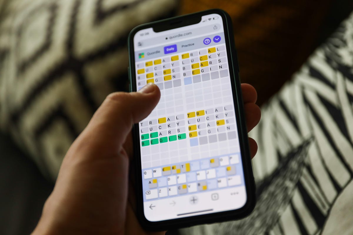 Quordle video game showed on a phone display. NurPhoto through Getty Photos I have...