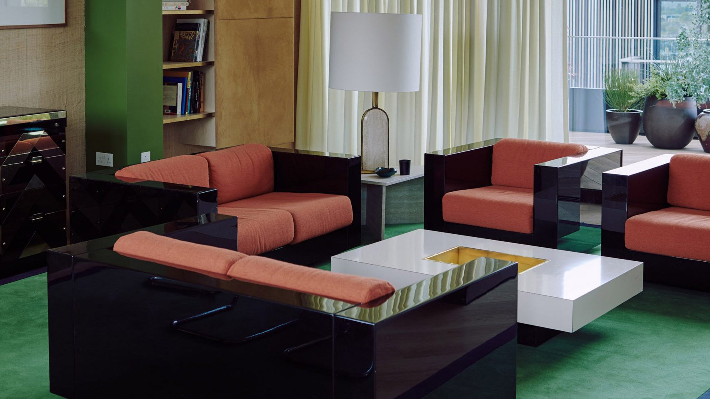 Ten living spaces where glossy surfaces create depth and dimension
